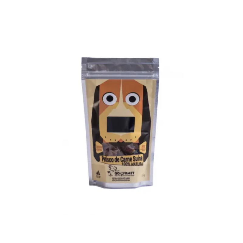 PETISCO DE CARNE SUÍNA 100% NATURAL Sabe quando você convida alguém especial para comer em um restaurante gourmet onde tem um petisco adorado e premiado? Pet Gourmet Natural proporciona isto, pois nossos amigos merecem sempre o melhor. Nossos petiscos são produzidos com carnes nobres, sem conservantes, corantes artificiais ou subprodutos, livre de grãos, glúten e enchimentos. Por isso, é perfeito para animais com sensibilidades alimentares. Selecionamos carnes de altíssima qualidade, que são suave e lentamente desidratadas para preservar todo o sabor e nutrientes essenciais. Embalagem que abre e fecha fácil, mantendo a qualidade. A Pet Gourmet Natural, sabe que o petisco é uma maneira de retribuir todo o carinho e a companhia de nossos amigos de quatro patas. Eles Merecem Pet Gourmet Natural! Amor e sabor em cada mordida!
