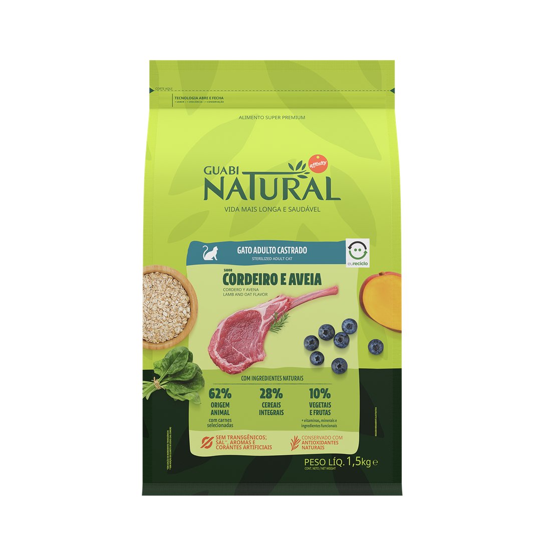 RAÇÃO GUABI NATURAL GATO CASTRADO CORDEIRO E AVEIA