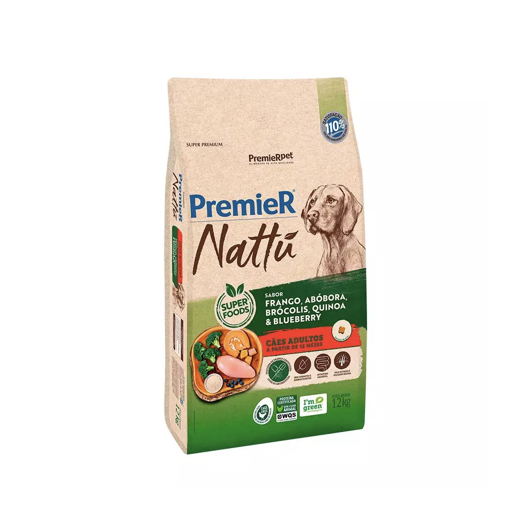 RAÇÃO PREMIER NATTU CÃES ADULTOS SABOR ABOBORA 12KG