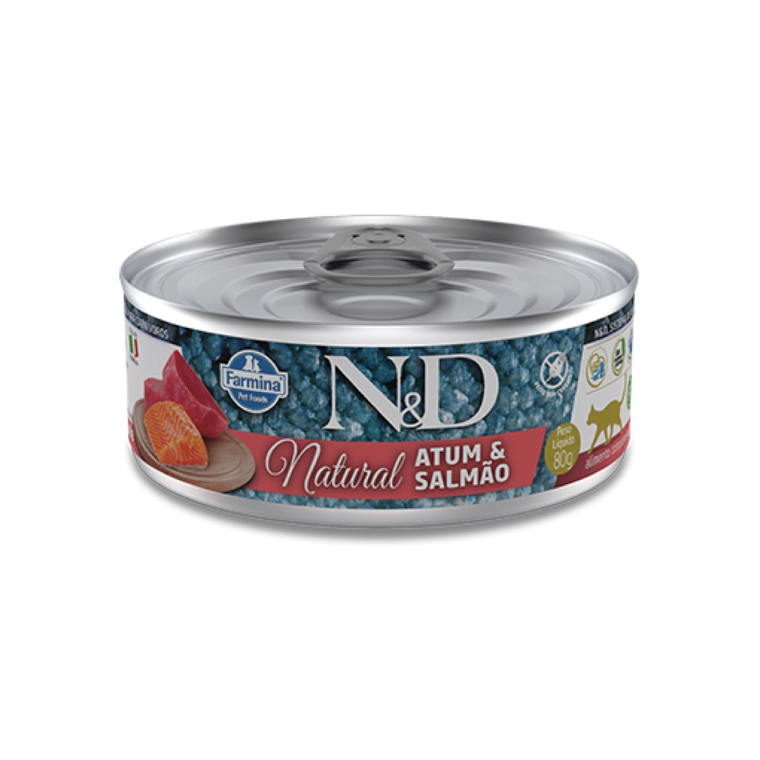 RAÇÃO ÚMIDA FARMINA PARA GATOS ND NATURAL ATUM E SALMÃO 0,08KG
